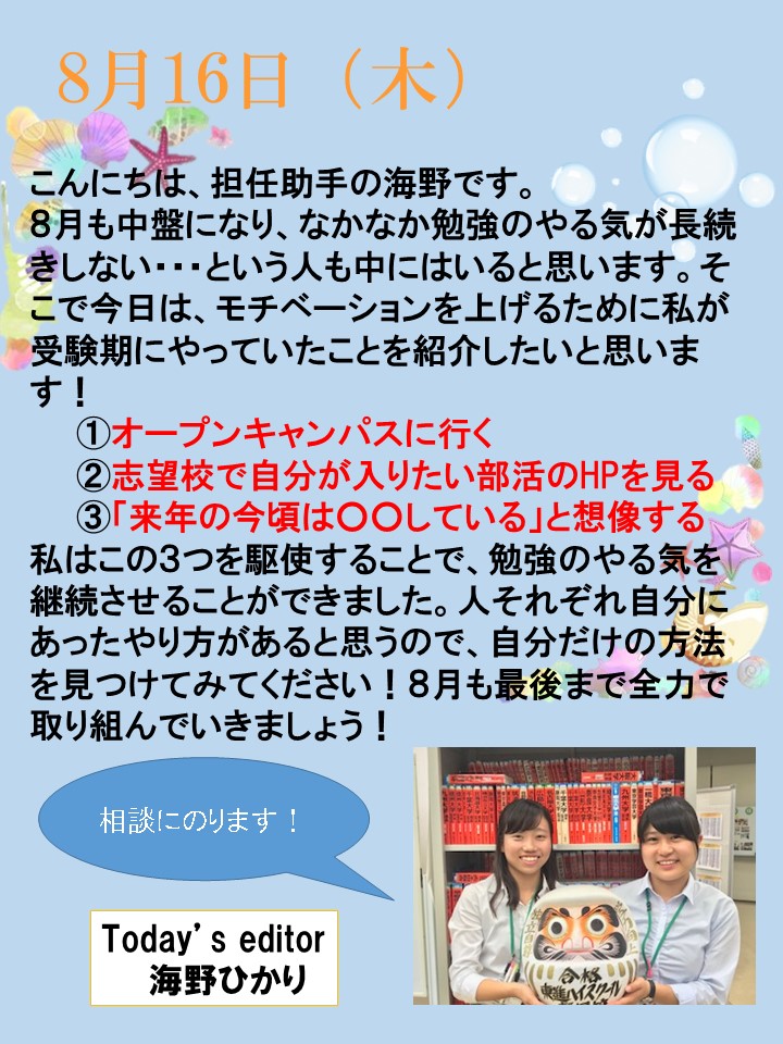 2018年 8月 16日 なかなかやる気がでない人は・・・
