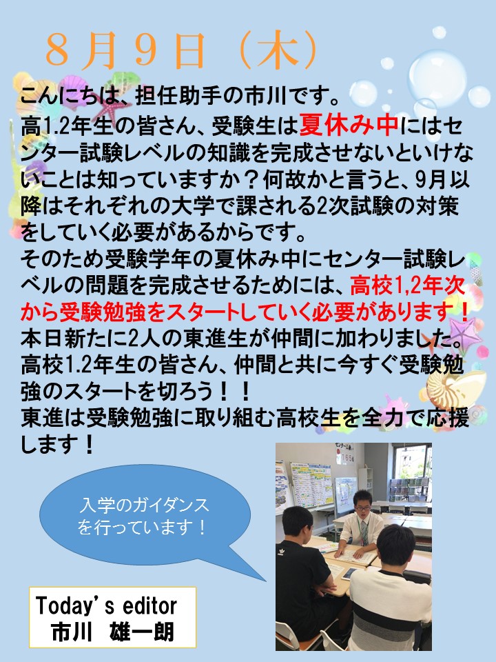 2018年 8月 9日 東進で勉強を頑張ろう!